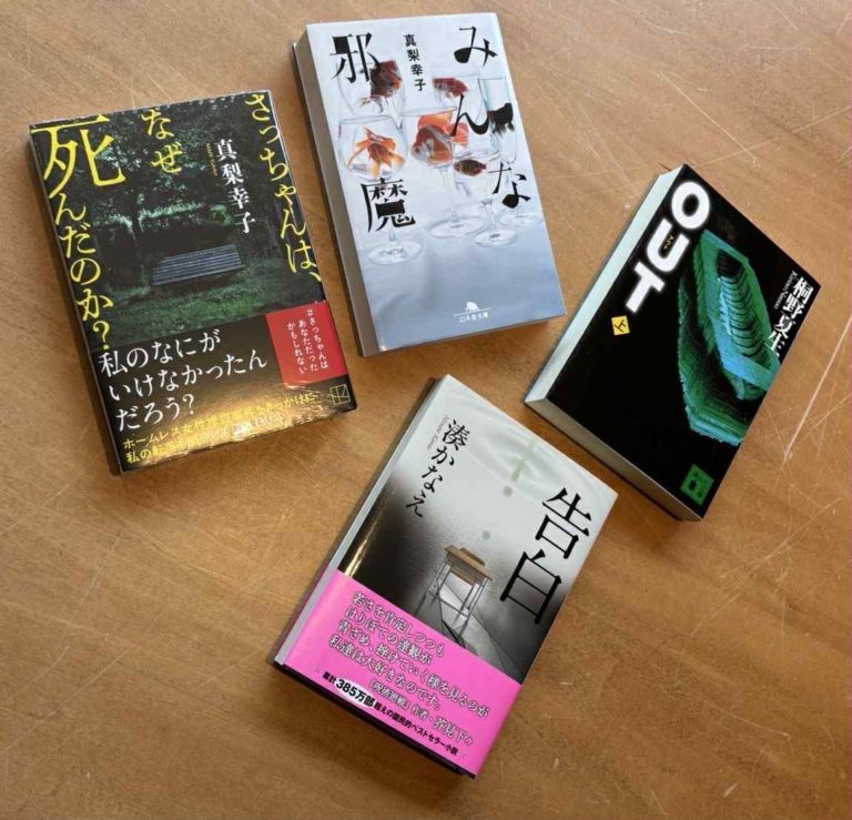 たくさんあるイヤミスコレクションの中から一冊を選びきれなかったという参加者さんもいて、せっかくのなの全部並べてもらいました。イヤミスを読んで残ったイヤな感情は別の作品のイヤで消すという話しから・・・こんなにたくさんの作品をお持ちなのだなと思いました。